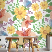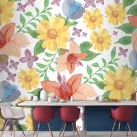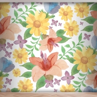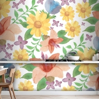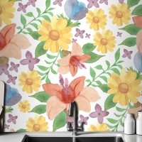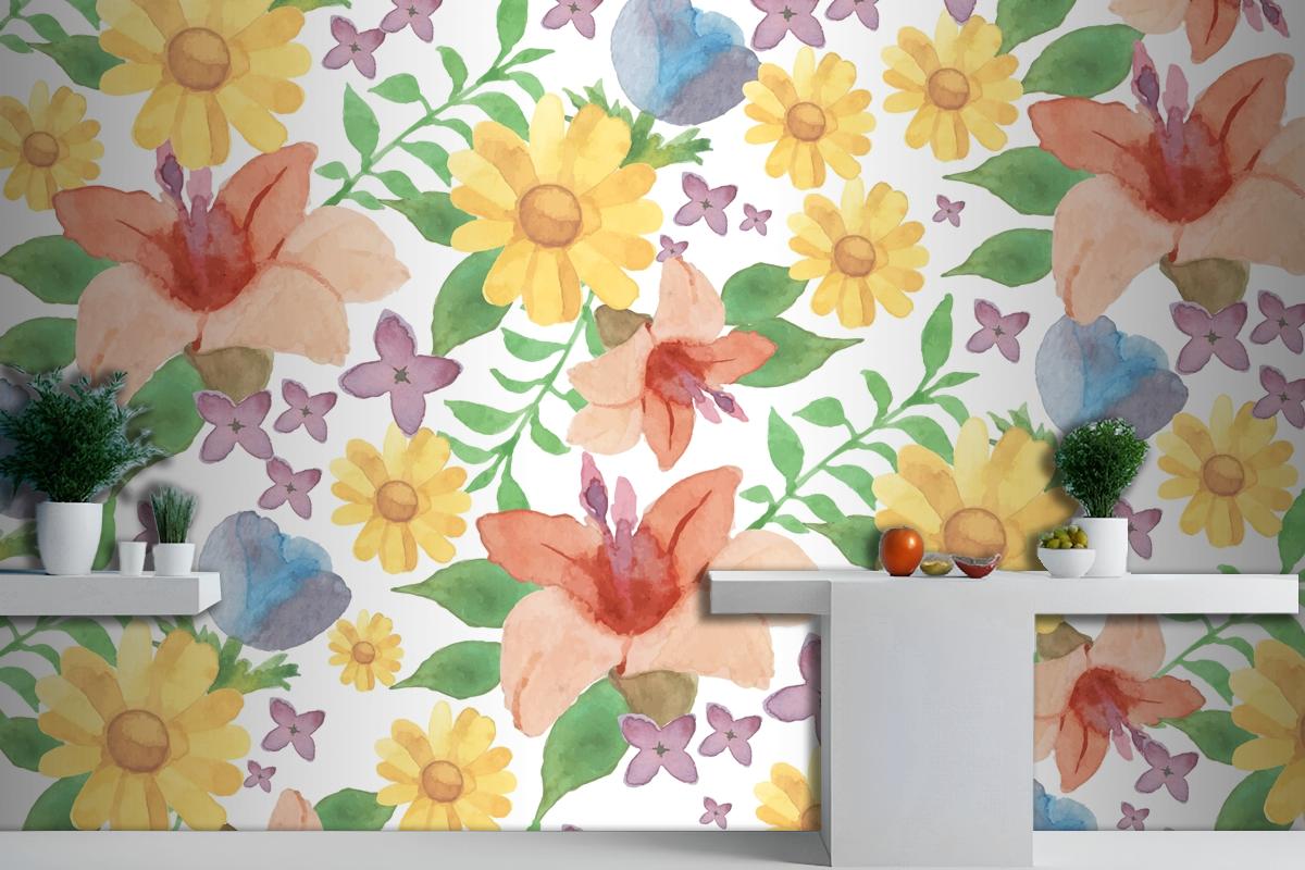 Zambaklarla Suluboya Çiçek Arka Plan Mutfak Duvar Kağıdı
