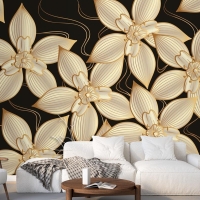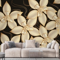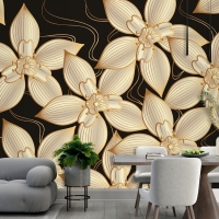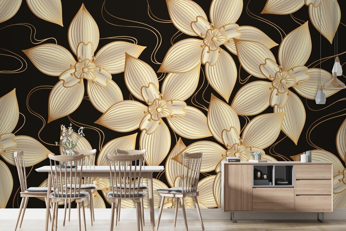 Zarif Çiçeklerle Degrade Altın Doğrusal Arka Plan Duvar Kağıdı