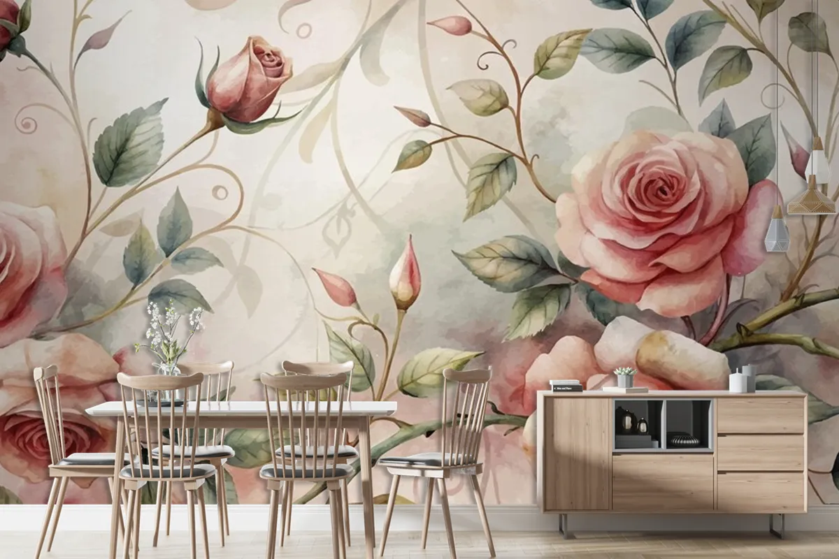 Zarif Gül Ağacı Deseni Suluboya Arka Plan Duvar Kağıdı