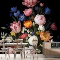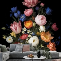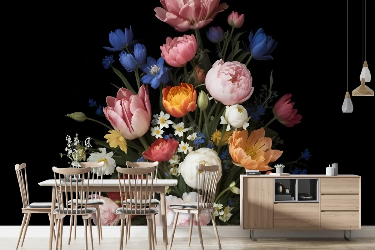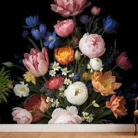 Zarif Hollanda Koyu Çiçek Buketi Duvar Kağıdı